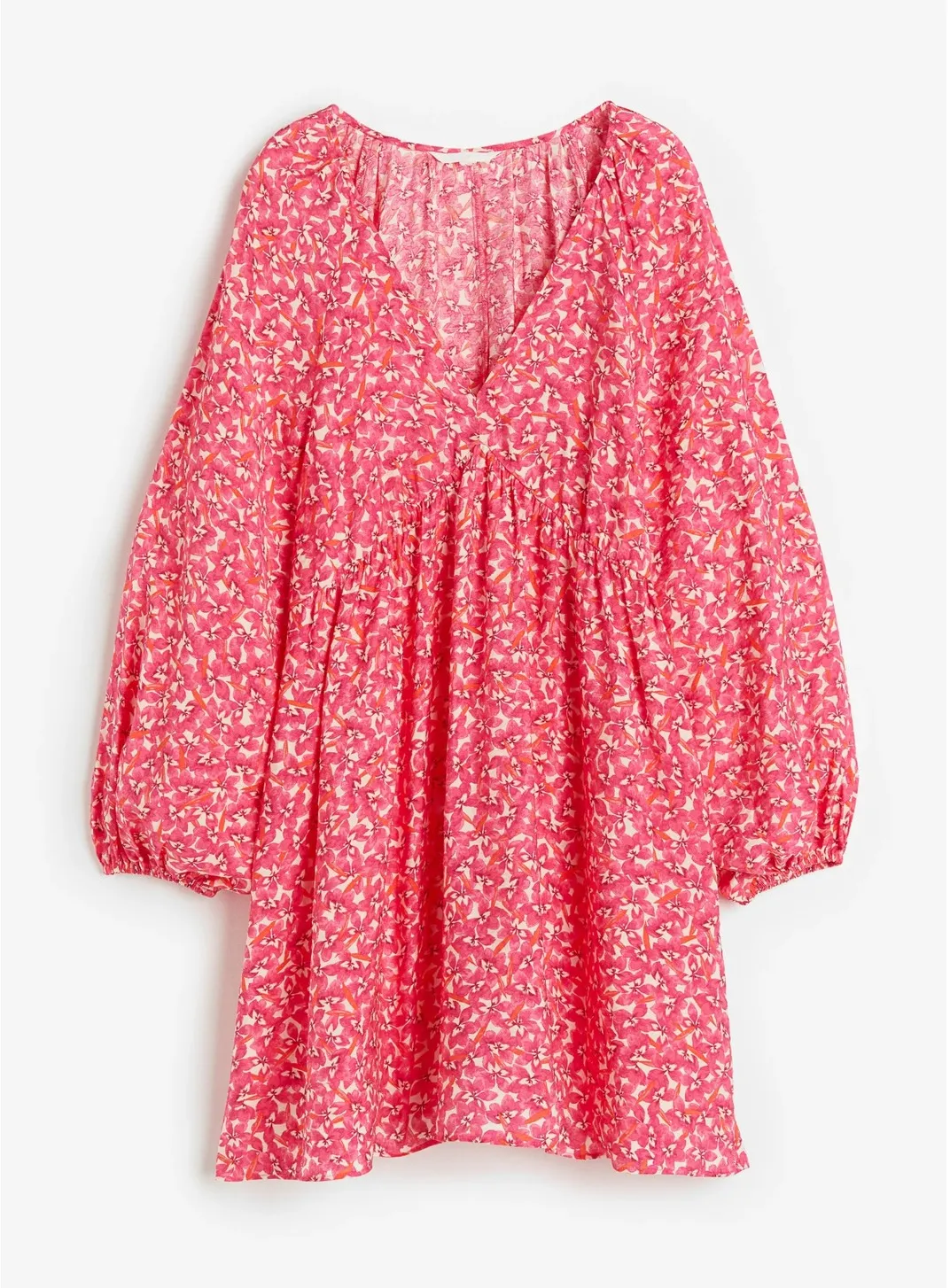 H&M Short A-Line Pink White Floral V-Neck Dress XS Great pre owned condition, only worn once Light... Show more