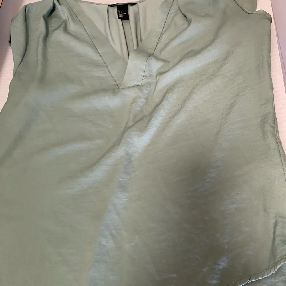 H&M sleeveless top seafoam green blue v-neck clean home great for professional wear under blazer