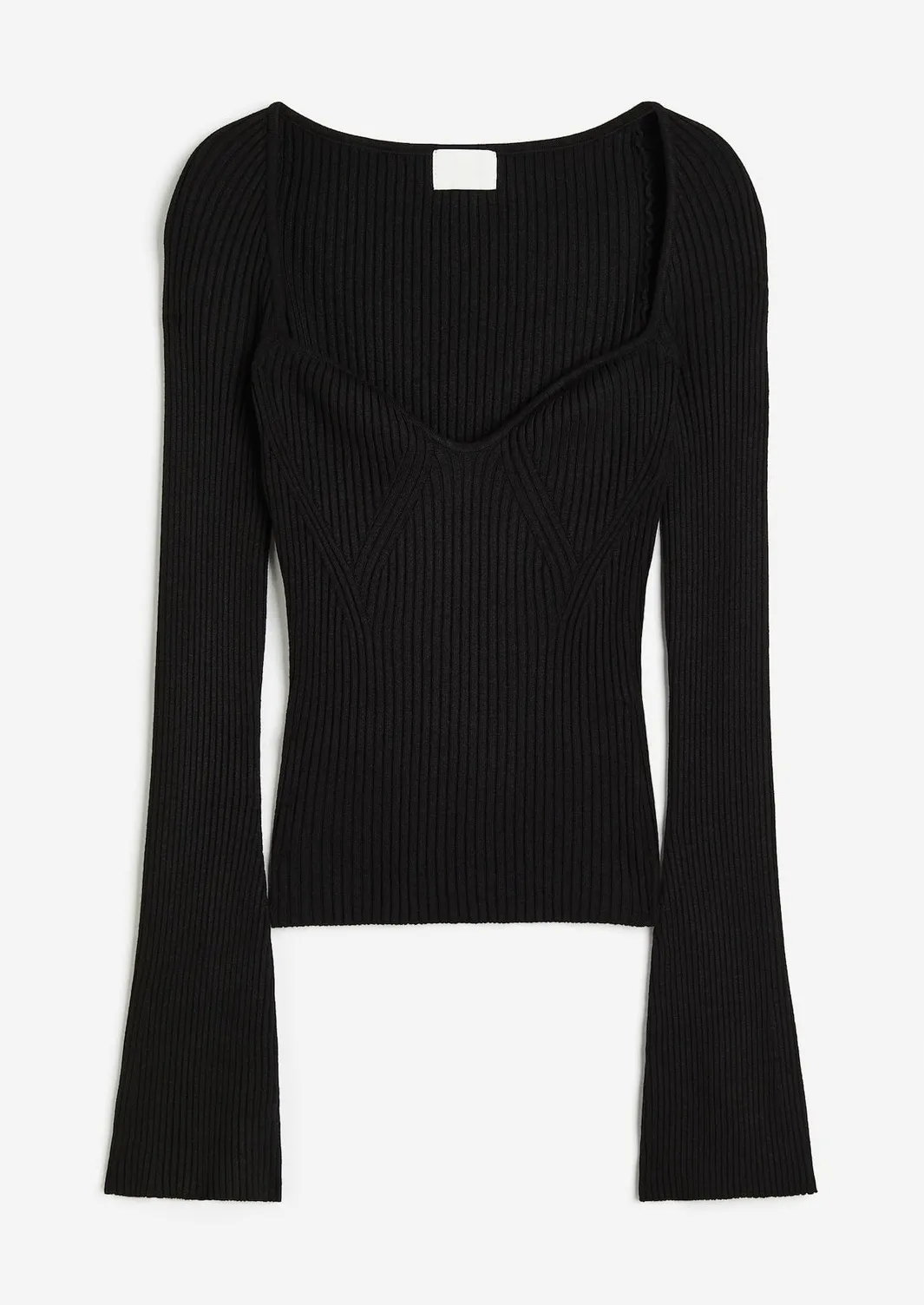 H&M Size Medium Black Rib Knit Sweater flare long sleeves . Sweetheart Neckline New with tags - no... Show more
