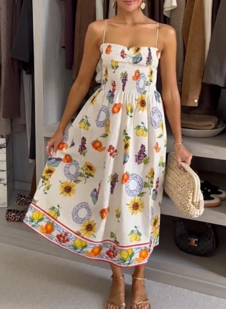 — New with tags Ivory white with blue yellow orange purple red icon print Large — Smocked ruched sid... Show more