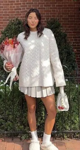 Worn two times, no spills on it, or anything. Just have a lot of cream sweaters- so giving it away