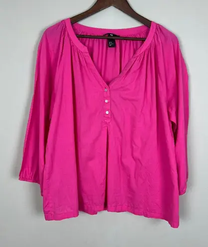 H&M Top Womens 14 Pink 3/4 Sleeve Solid Relaxed Fit V-Neck Shirred Pullover Very good condition!... Show more