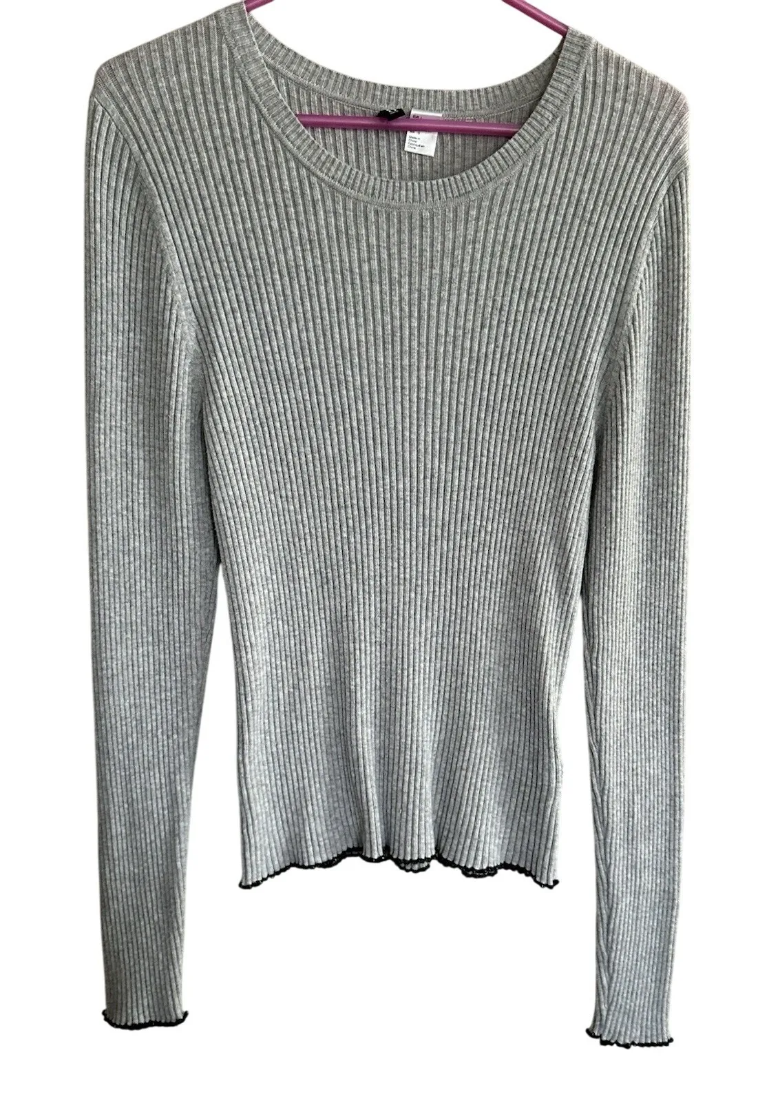 VTG Y2K Sweater Women Gray Contrast Lettuce Hem Large Lightweight Bella Elena