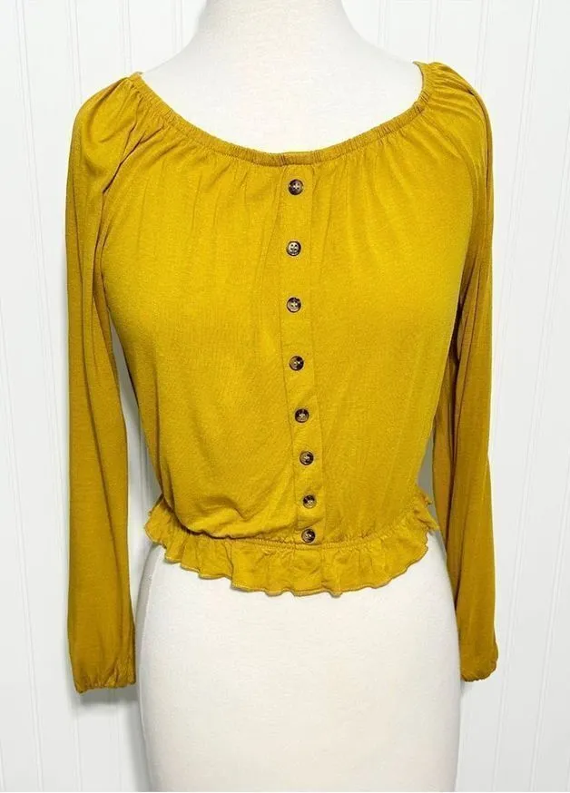 H&M Women's Cinched Waist Long Sleeve Cropped Top Blouse Mustard Yellow Size XS Size: XS Conditi... Show more