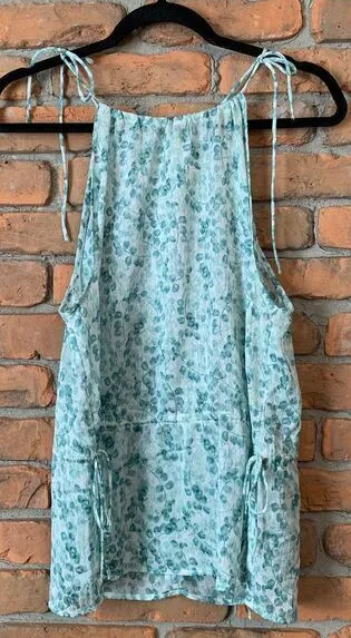 Beautiful green floral print tank top with tie shoulder straps and tie waist. Features a flowy silho... Show more