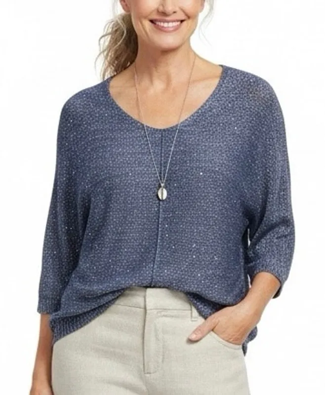Sequin accents Tight Knit Open Neck 3/4 Sleeves Dolman Sleeves Open knit Loose Fit 55% Cotton 23% Ac... Show more