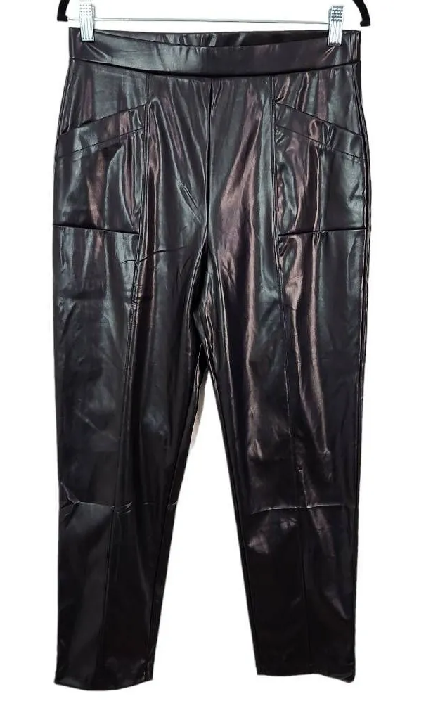 Halston vegan leather pants. Features pull-on style, front pockets, and a slightly tapered leg. New... Show more