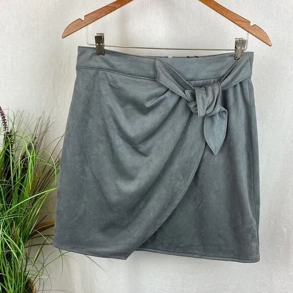 Halston H Gray Faux Suede Front Wrap Mini Skirt S NEW - $38 New With Tags - From Designer