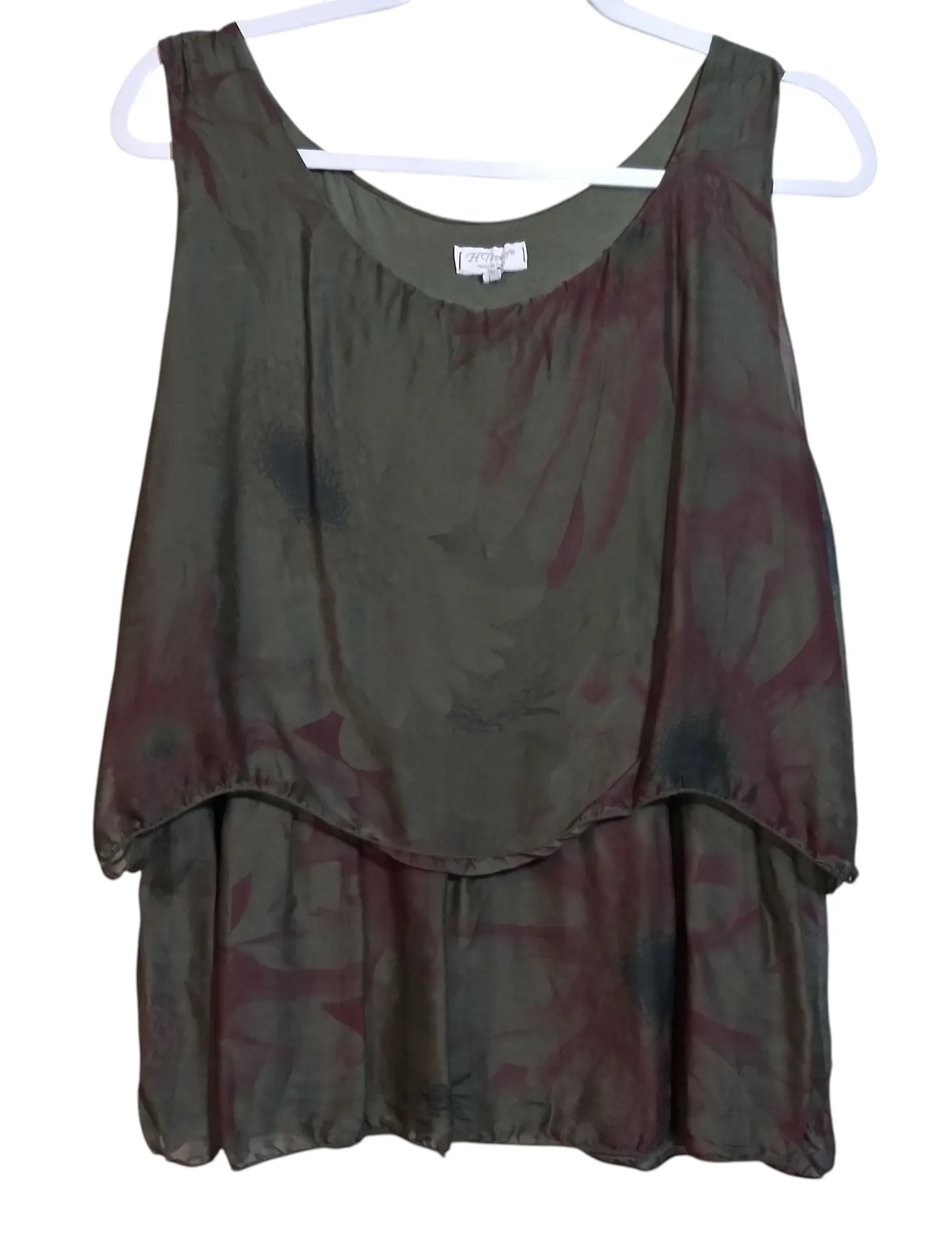 H Trend Made In Italy Silk Dark Floral Layered Tank Top Size L This elegant sleeveless top feature... Show more