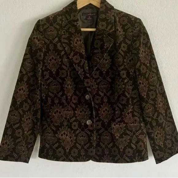 Vintage Willi Smith Floral Tapestry Brown Corduroy Blazer. Beautiful Victorian Brown Brocade Button... Show more