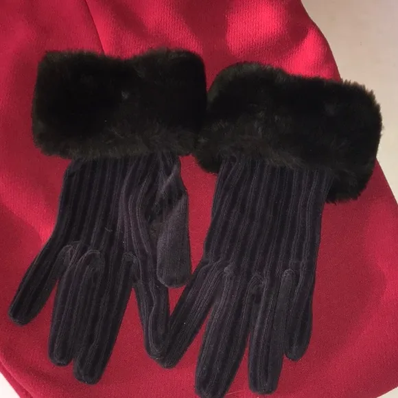 Beautiful gloves with fun fur in an eggplant color, these were from Saks Fifth Avenue never wore, br... Show more