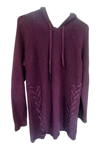 A hoodie sweater tunic takes knit up a notch with bold side lacing and raglan sleeves. Attached draw... Show more