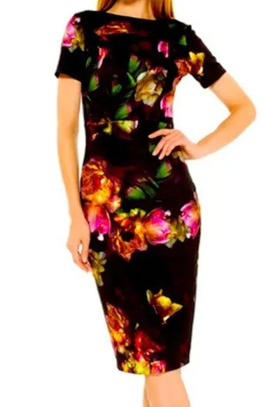 Alexia Admor Enchanted Garden •Size XS. •Black Floral. •Complete lined •Scuba •Short Sleeve •Sheath Dress •Sheath Silhouette •Short sleeves •Crew Neckline Hidden back zipper closure •Knee Length Hem •Scuba fabric Fabrics 95% Polyester, 5% Spandex. •Length 41” Bust 17” Waist 13.5 Hips 16”. • Brand New Condition with Tags