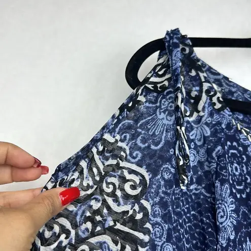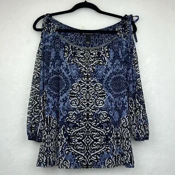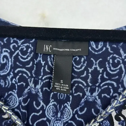 INC International Concepts Blue Geometric BEADED DETAILS Cold Shoulder Sleeve Top Sz S Size Small... Show more