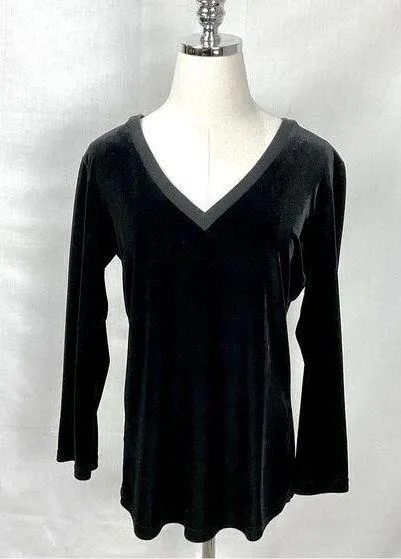 Vintage Moda International (Victoria's Secret) Black 3/4 Sleeve Velour V-Neck Top Blouse Shirt 90s s... Show more