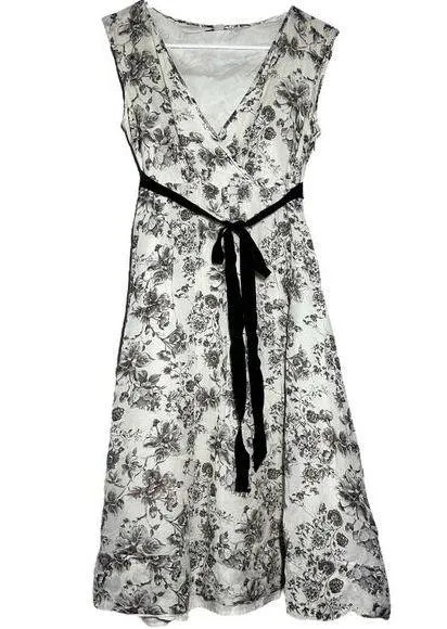 Banana Republic Dress Floral Print Sleeveless Deep V-Neck Self tie waist dress White 2 stitchin... Show more