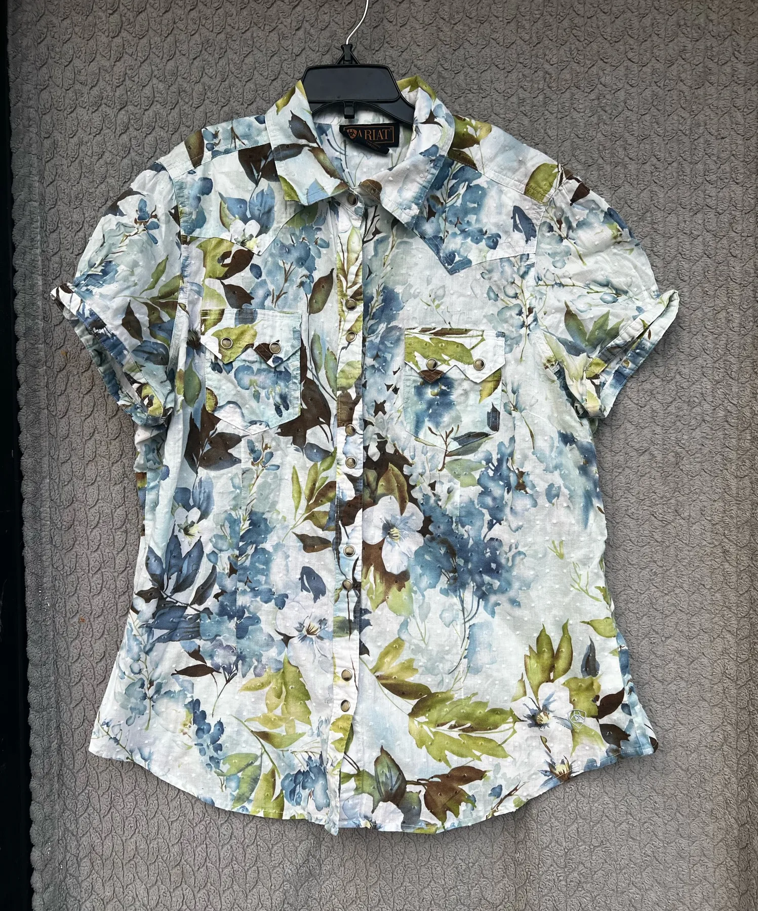 Ariat women's floral short-sleeve button-up shirt size Large Blue - $34 (43% Off Retail) - From Cynthia