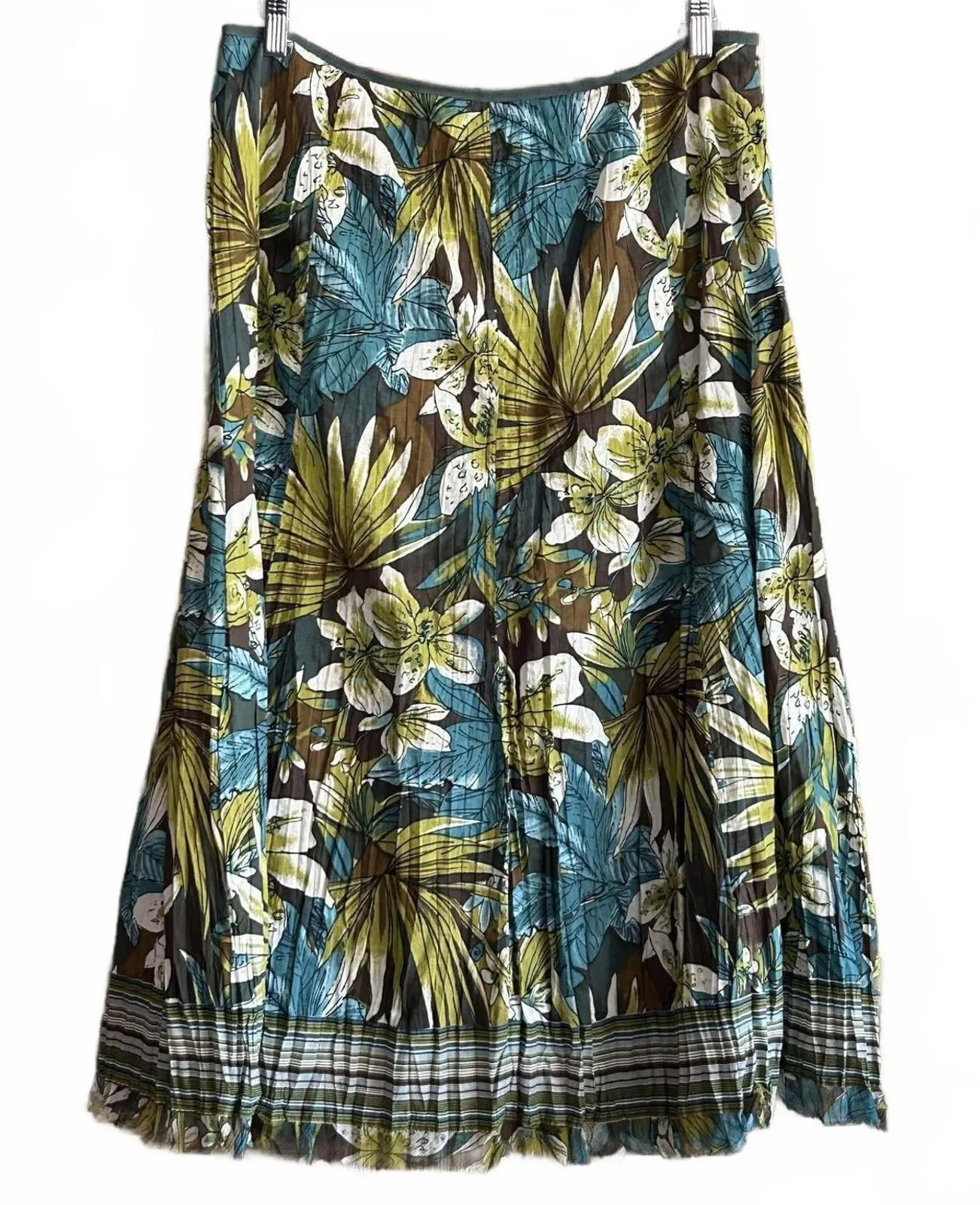 EUC Nygard Beautiful Green & Blue Floral Print Skirt in a Size 12 • Flowy A-Line Maxi, Lined • Pleat... Show more
