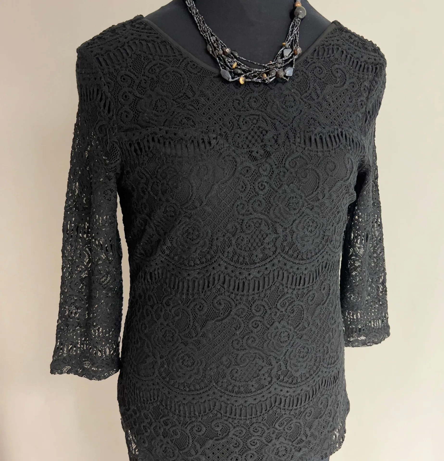Simple Tee, chic and delightful romantic Lace Top for any occasion. All over lace 3/4 lace sleeves R... Show more