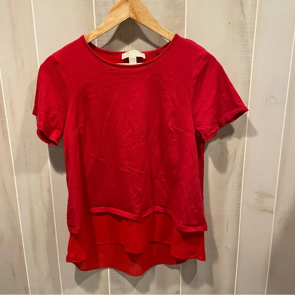 Cute Michael Kors ruffle hem top short sleeve spicy red. Size PM. GUC. Measurements taken laying fla... Show more