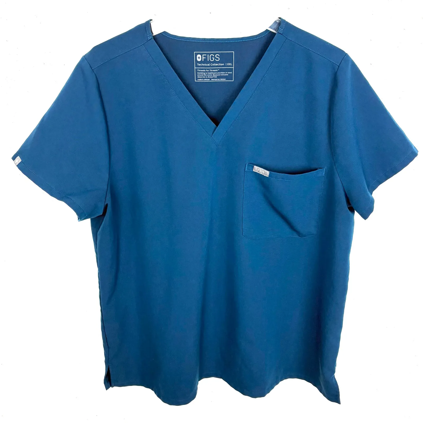 Figs Catarina One-Pocket Scrub Top Blue V-Neck Darted Back Short Sleeve Size XXL Excellent conditio... Show more