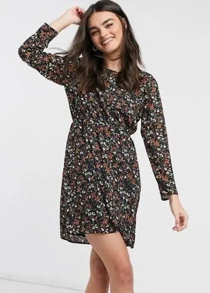 J. Crew Blouson Chiffon Colorful Floral V-Neck Long Sleeve Mini Dress Ruffled Mock Neck Elastic Wais... Show more