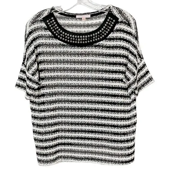 Romeo & Juliet Couture Black and White Striped Sweater EUC Size Small, underarms 23”, length 22” Sem... Show more