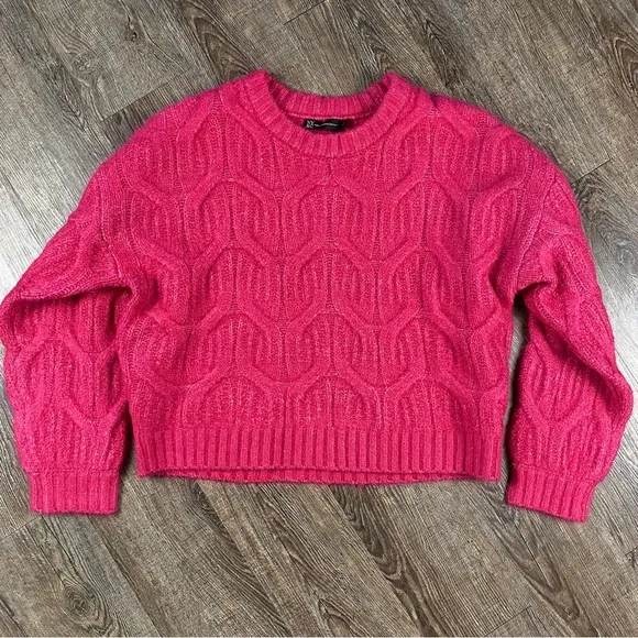 NEW New York & Company Sweater Women Size XL Pink Cable Knit Crew Neck Ribbed Trim Size: XL Women... Show more