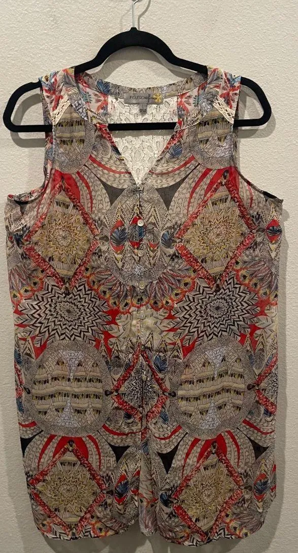 FIGUEROA AND FLOWER Multicolor Lace Back Sheer Sleeveless Tunic. Size L Excellent pre-owned conditi... Show more