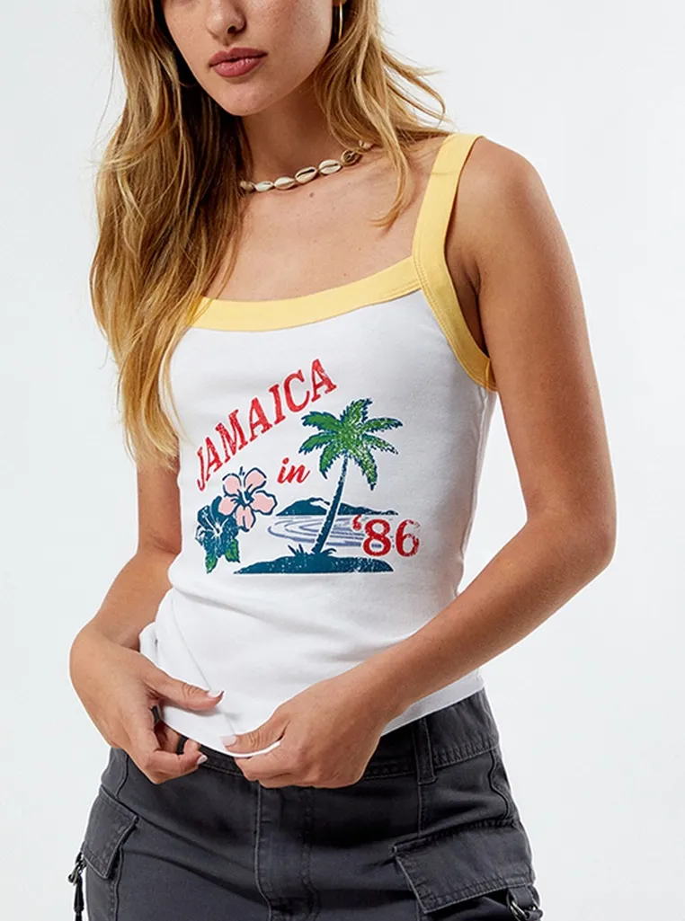 This PacSun tank top combines a vibrant yellow trim and white color scheme with a fitted, sleeveless... Show more