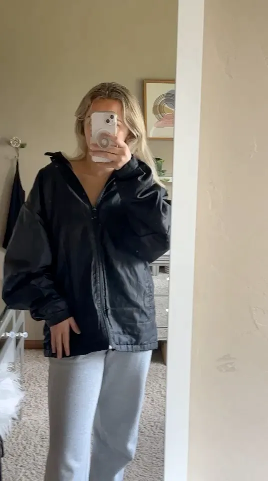love this jacket!!!! solid black, matches anything. the perfect streetwear for a year round light/me... Show more