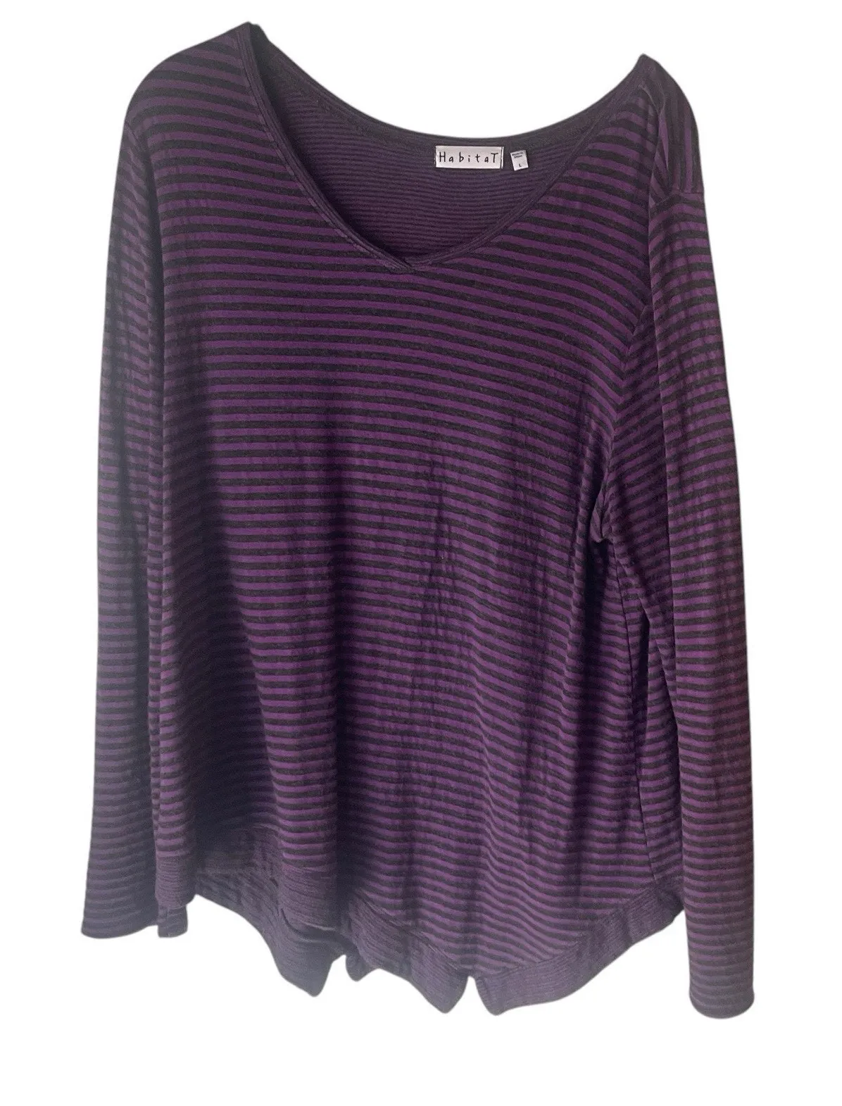 Habitat Size Large Purple Black Striped Grunge Artsy Lagen Long Sleeve Top Item is in excellent prel... Show more
