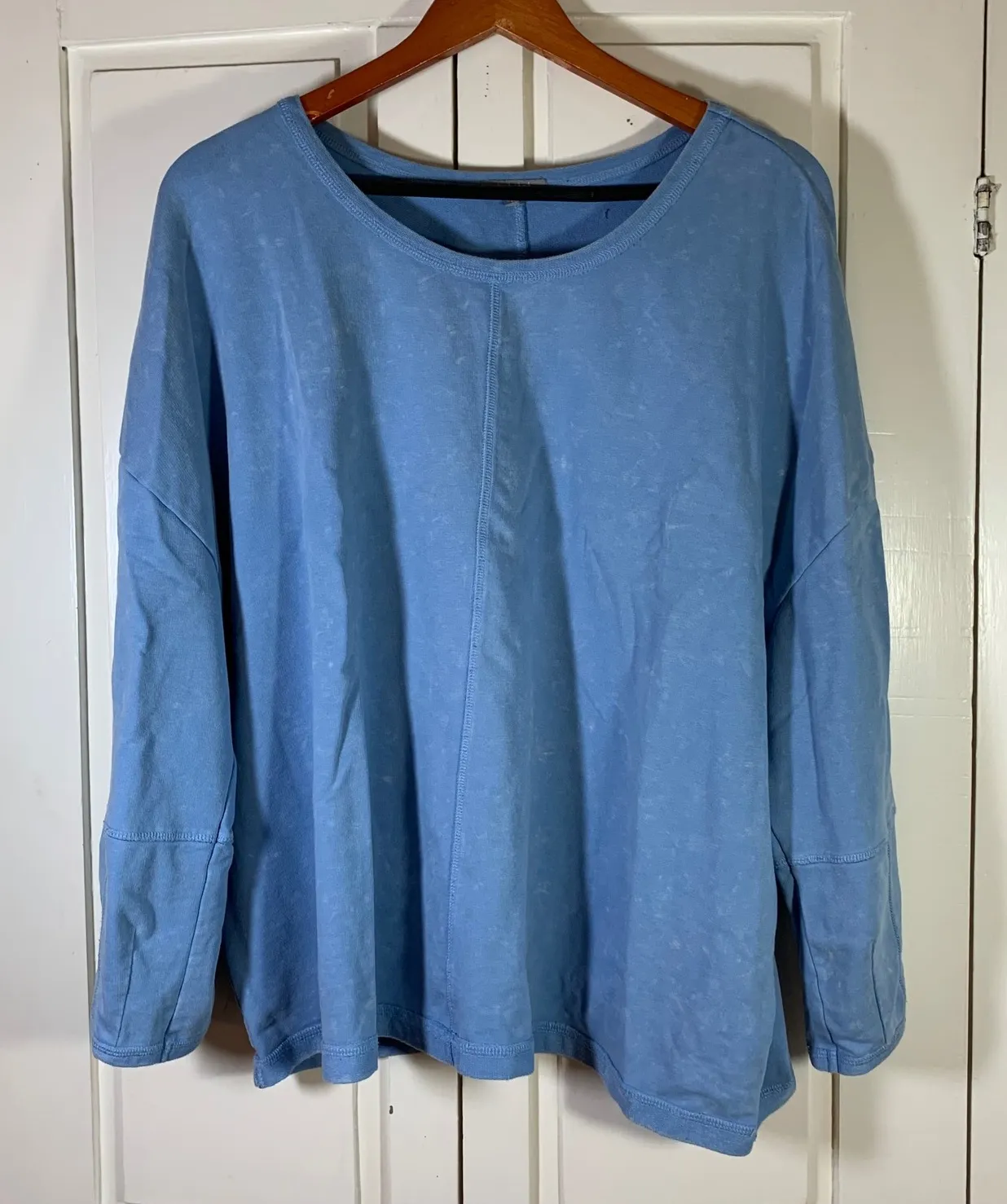 Comfortable and stylish top for everyday wear, a versatile addition to any wardrobe. This blue long-sleeve top offers a relaxed fit with a rounded neckline and a subtle panel design down the front and back. Its soft fabric ensures all-day comfort, making it ideal for casual outings, weekend errands, or simply lounging at home. Pair it with your favorite jeans or leggings for a complete, effortless look. Color: Blue Type: Blouse Department: Women Style: Basic Material: Cotton Blend, Spandex, Cotton Neckline: Round Neck Sleeve Length: Long Sleeve Sleeve Type: Casual Sleeve Pattern: Solid Features: Comfort Fit, Relaxed Fit, Soft Fabric, Breathable, Easy Care Fit: Relaxed Keywords: Habitat, blue top, long sleeve, womens top, casual top, comfy top, cotton blend, XXL, plus size, loungewear, relaxed fit