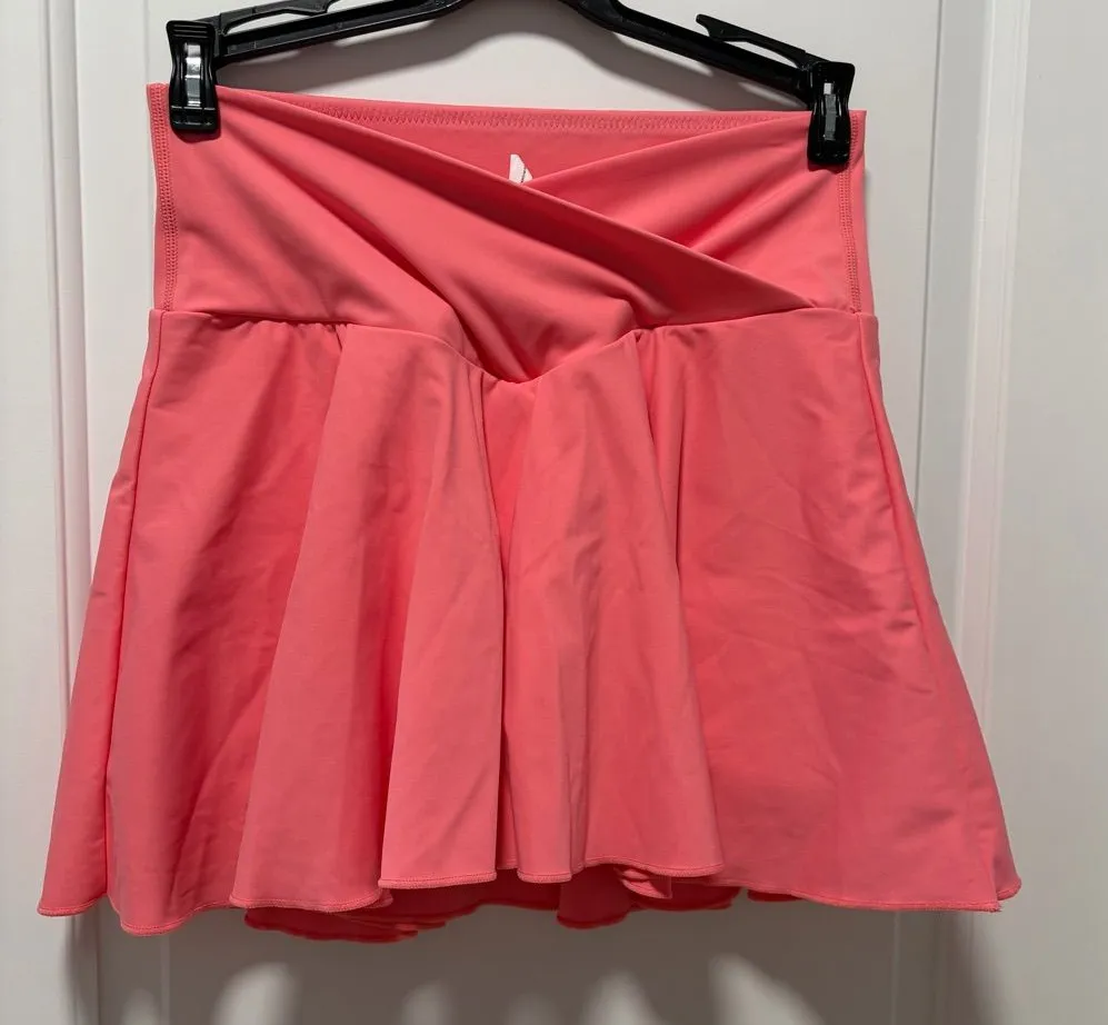 Skort is brand new with tags and comes from a smoke free home. * Halara * women’s size Small * Cloudful skort * crossover waistband * attached shorts * perfect for tennis or pickleball * stretch * pull on * coral pink * approximately 12.5” flat across the waist; 2.5” inseam * brand new; never worn