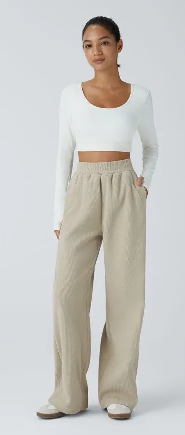 Style Name: Halara High Waisted Pocket Straight Leg Corduroy Pants Print: Almond Milk beige Features... Show more