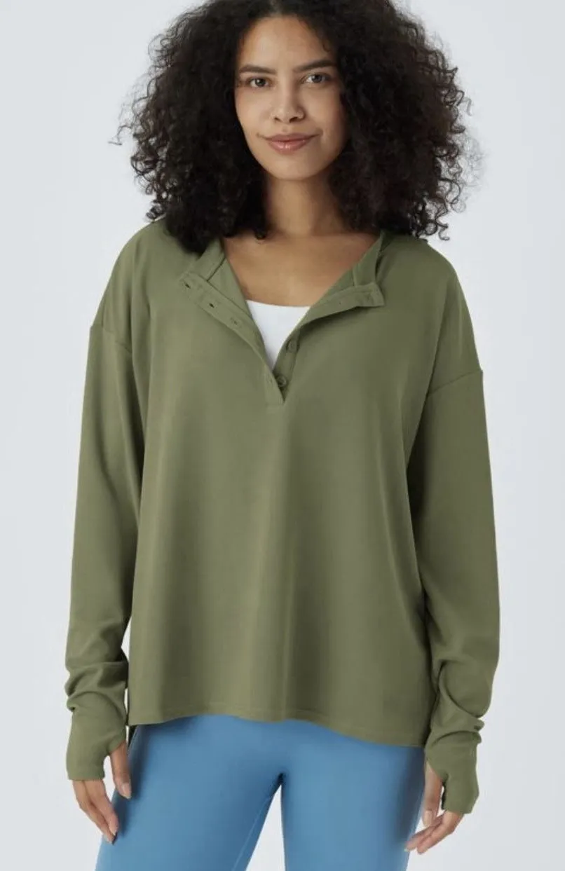 Great pre owned condition. Long sleeve. Has thumb holes. Lots of stretch. All measurements are approximate: 27 inches pit to pit. 21 inch sleeve from cuff to pit. 28 inch length from shoulder to bottom hem.
