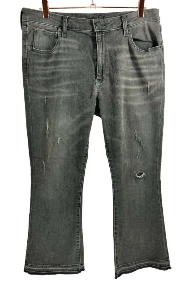 HALE Lily Stunner Mid Rise Cropped Jean in Washed Black. Size 32. Raw hem. 99% cotton, 1% spandex. *Please note these may have been altered/cut off post manufacturer. Please double check inseam. (Tag indicates these have a skinny leg with zipper and they do not) Approx measurements when flat Rise 10” Inseam 24.5”