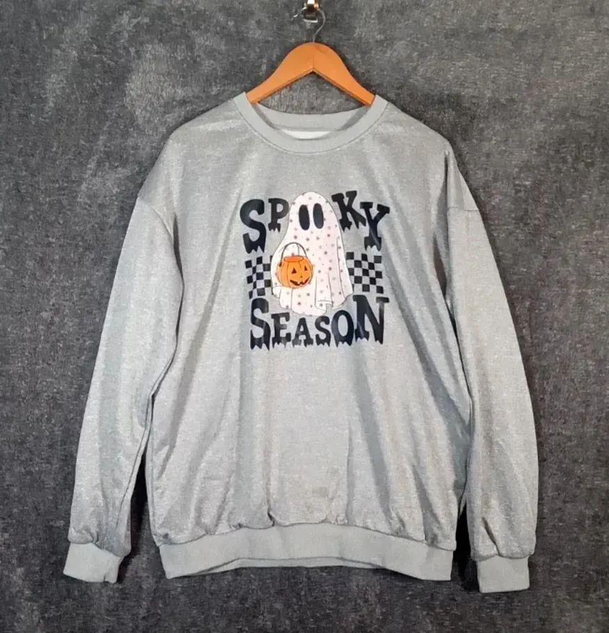 Halloween homemade sweatshirt spooky season long sleeve women's size extra large Gray - $18 - From Beatriz