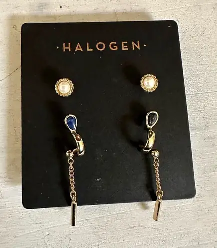 Halogen Bought at Nordstrom 3 earrings - all post Gold tone and faux pearl, gold tone chain dr... Show more