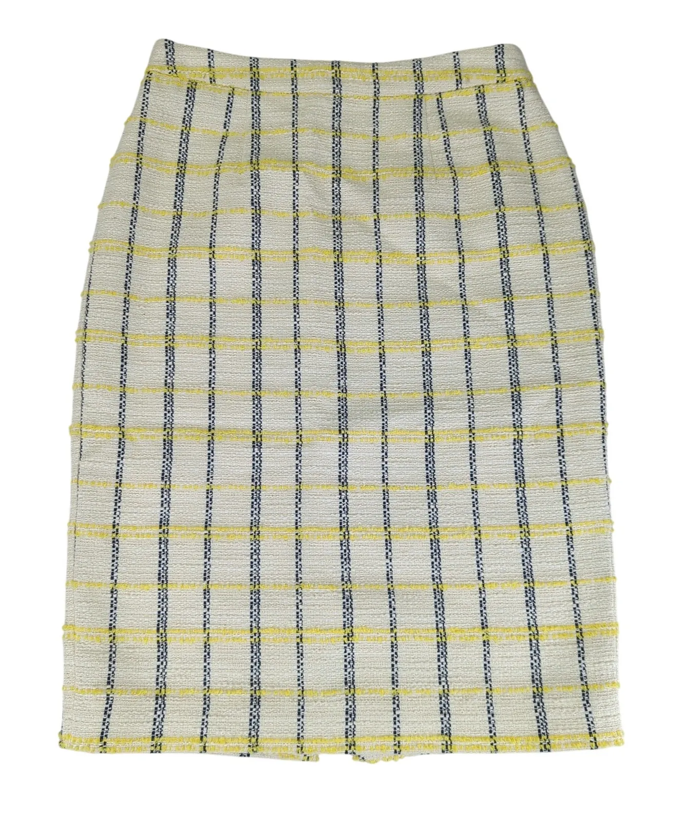 Halogen Tweed Midi Skirt Cream With Yellow Black Plaid Women's Size 6 Light Academia In excellent... Show more