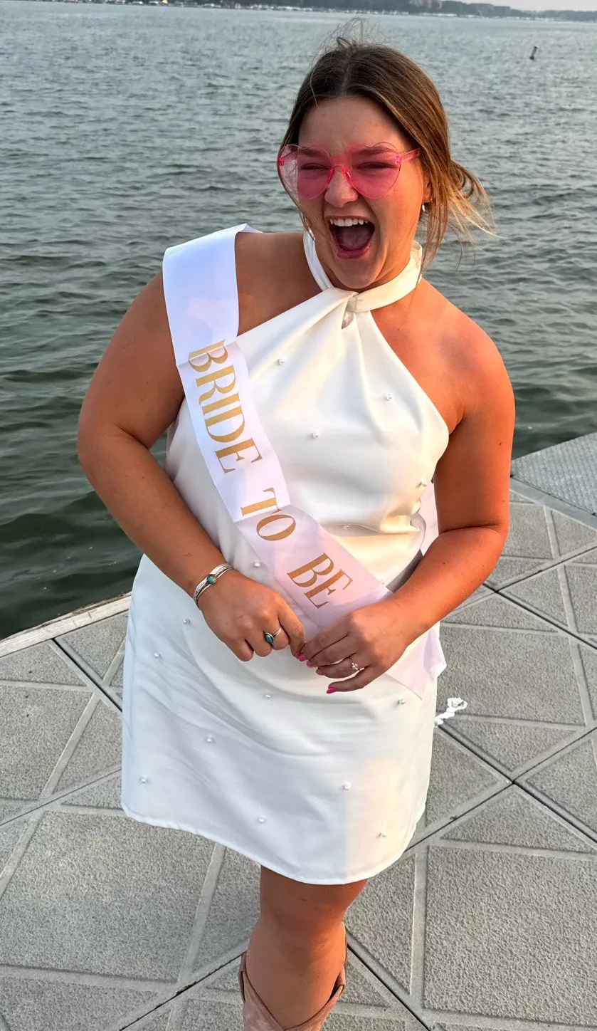 Halter neck white pearl dress Size L - $33 - From Brooke