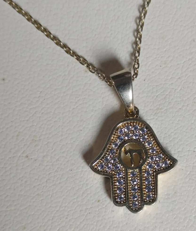This gold-plated Hamsa hand necklace combines timeless elegance with a spiritual charm. The intricate rhinestone details evoke a vintage allure, making it a cherished accessory. • Pendant Height = Approximately 1 Inch • Lobster Clasp Closure For Secure Fit • Chain Length = 18 Inches • Crafted With Hypoallergenic 925 Silver Some slight tarnishing visible on the back of the pendant. Buyer Information All items are professionally cleaned and sanitized with an ozone treatment prior to shipping. Please note that this process may leave a light, temporary scent. The majority of my listings are pre-owned. Buyers are encouraged to request additional details or clarification before completing a purchase. I respond promptly to all inquiries. Reasonable offers are welcome and will be considered. Jewelry Testing Disclaimer: Gemstones are tested using the Presidium Duo Tester II. While this method confirms gemstone type, it cannot differentiate between natural and lab-created stones.