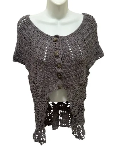 Hand Made Gray Crochet Sweater Vest Unique Buttons Sz S-M Boho Artsy Hippy Fall Size M - $35 - From Christine
