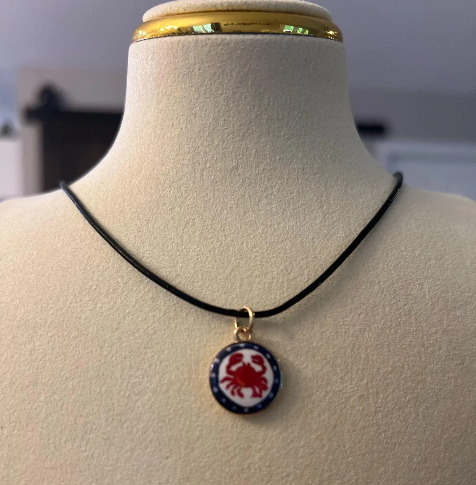 A unique, artisan-crafted piece featuring: ✨ Stainless steel charm with 18K gold plating – durable, hypoallergenic & tarnish-resistant ✨ Hand-painted designs – choose from flower, strawberry, or crab motifs for a playful yet elegant touch ✨ Hung on a classic BLACK rope chain necklace, available in 18”, 24”, and 28” lengths (Available in Brown leather, black, or 18k gold plated stainless steel necklace) ✨ Lightweight and comfortable — perfect for everyday wear ✔️ Unisex style – looks great on both men & women ✔️ Timeless & versatile – wear as a choker or longer statement chain ✔️ Durable quality – made to last while keeping its shine 🌟 A fun, artistic piece that makes the perfect gift or addition to your jewelry collection!