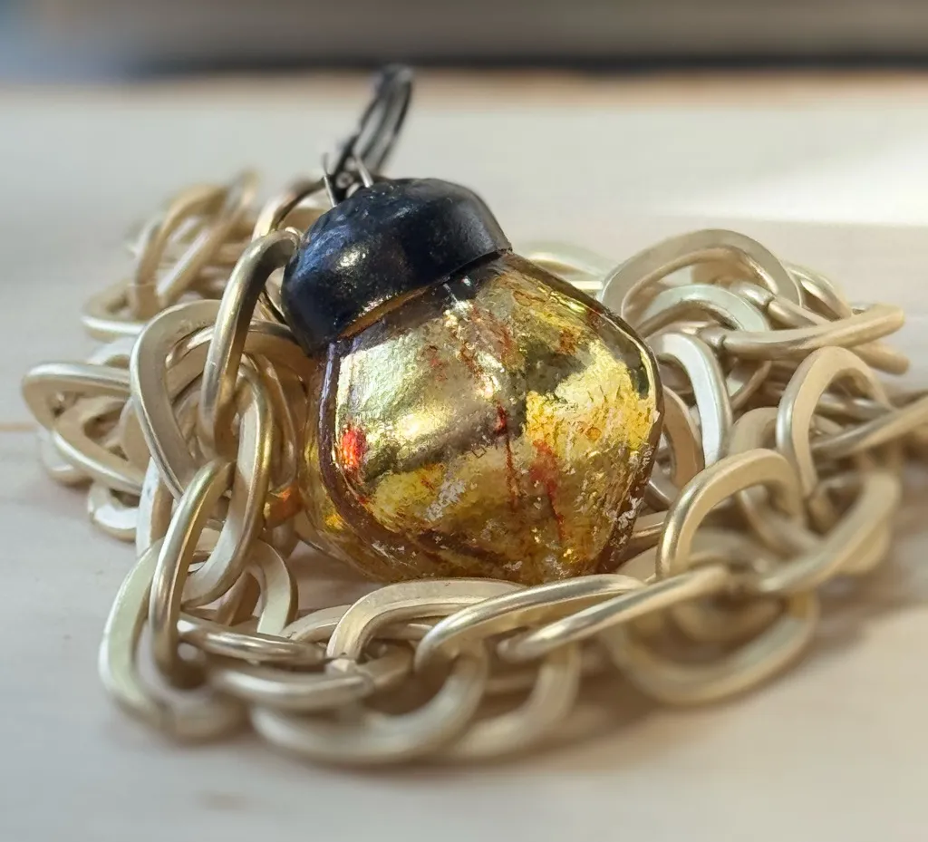 This exquisite necklace features a handcrafted gold pendant, beautifully paired with a matte gold li... Show more
