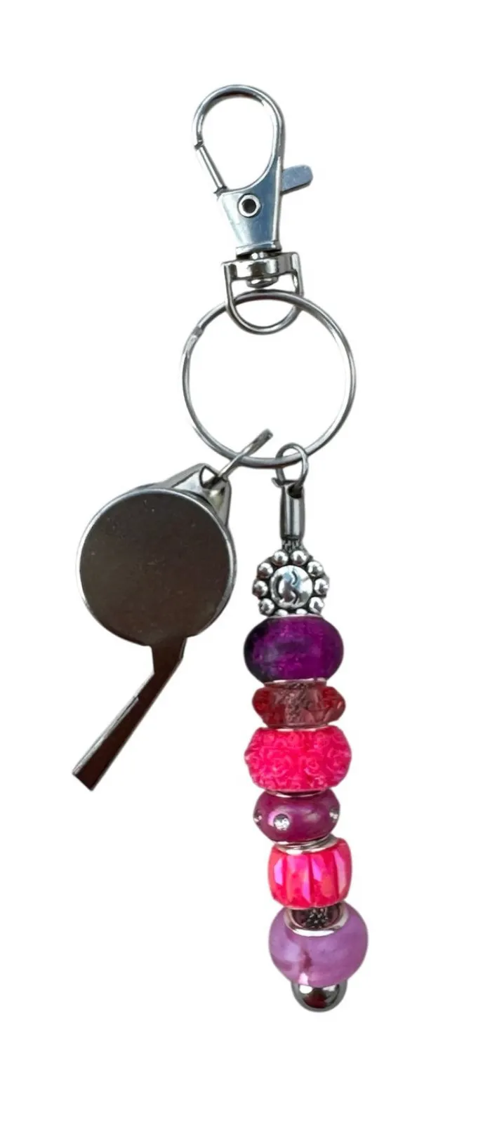 Beaded Pink Lobster Clip Safety Keychain With Charm And Metal Whistle New - $9 New With Tags - From Shari