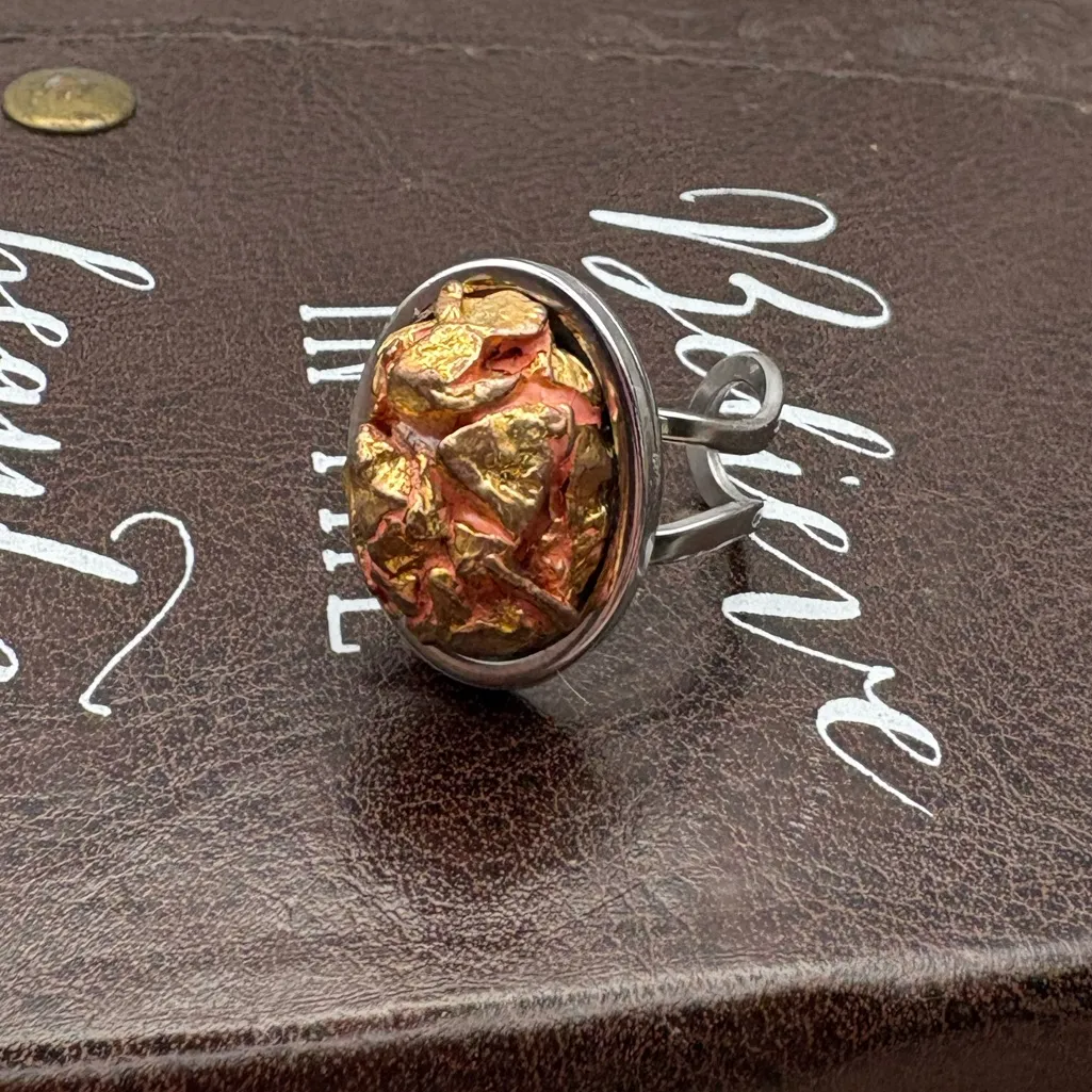 : • Handmade ring • Vintage 1960s–70s textured cabochon • Adjustable stainless steel base • Bold metallic tones, brutalist style • One-of-a-kind A unique statement piece with retro modernist vibes. Style Tags: #BrutalistJewelry #StatementRing #VintageStyle #BoldAccessories