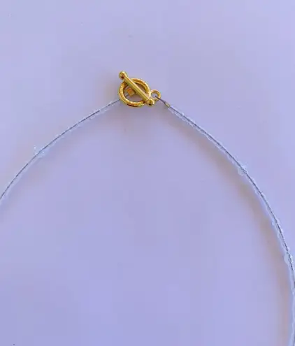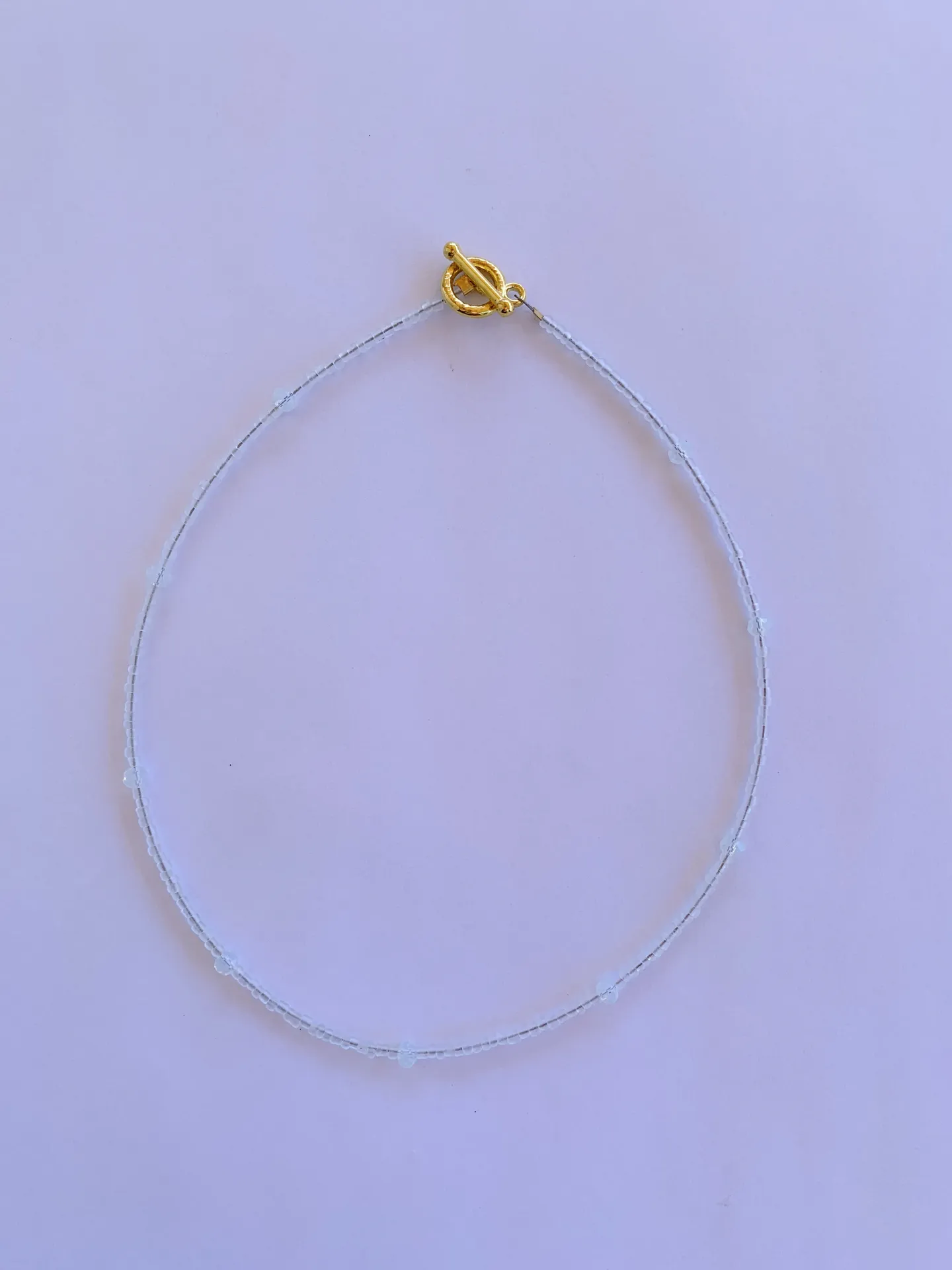 Crystal Necklace Handmade by me with gold plated hardware. Small frosted clear beads with clear crystal (high quality, bought at a gem show). Looks very elegant and matches with everything. Perfect everyday staple.