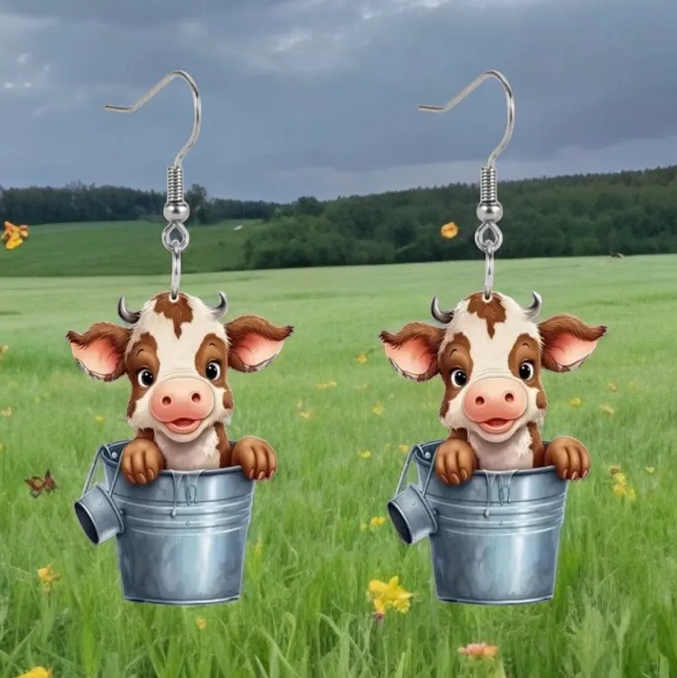 Cute Cow Bucket Design Acrylic Dangle‎ Earrings Cartoon Y2K Style Adorable - $13 New With Tags - From Mon