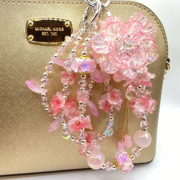 ✨✨ONLY 1 AVAILABLE✨✨ 🌸 Handmade Luxury Triple-Layer Bling Purse/Bag Chain/Keychain/Key Ring/Phone Chain or Charm Accessory Jewelry With Beautiful Light Pink Acrylic and Glass Flowers and Fancy Crystal & Handmade Fancy Clay Beads Beyond stunning. It’s hard to capture the full beauty in photos—it’s more gorgeous in person. Can be used as a keychain, phone chain, bag chain (my favorite) or clothes chain—wear on your jeans or pants by attaching to belt loops—so cute! Gorgeous, fun wearable art. Each piece is handmade. Beautiful luxury quality and sparkle. Truly special! 🌸✨ Makes a lovely and unique gift for you or anyone special in your life. Super gorgeous and a fun way to add a little bling to anyone’s style! 🌸✨ Included (all shown) 🌸Elegant 3D floating frame gift box 🌸Velvet pouch for storage 🌸Phone case lanyard 🌸Pair of smaller silver rings (gold optional) 🌸Pair of large silver rhinestone rings (for wearing on bags especially, gold optional) Approx. Dimensions Total length (excluding rings): 12” 🌸Search my closet for other colors/styles & other cute accessory listings🌸 Gift, Keychain, Key Ring, Phone Accessory, Bag/Handbag/Purse Chain, Purse or Backpack Charm, Glittery, Sparkly, Bling, Blingy, Shiny, Luxe, Luxury, Fancy, Bougie, Classy, Pretty, Beautiful, Wristlet, Bracelet, Strap, Phone Charm, Purse Accessory, Rhinestones